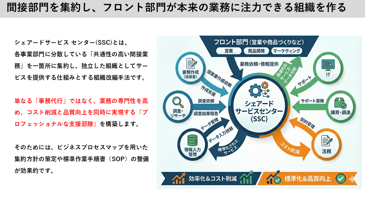 間接部門を集約し, 本来