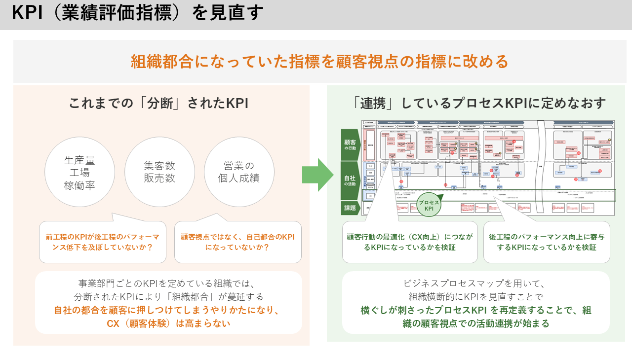 自社都合ではなく、「顧客の行動」を起点に業務プロセスを再設計。真に顧客体験価値(CX)を高める活動へシフトします。