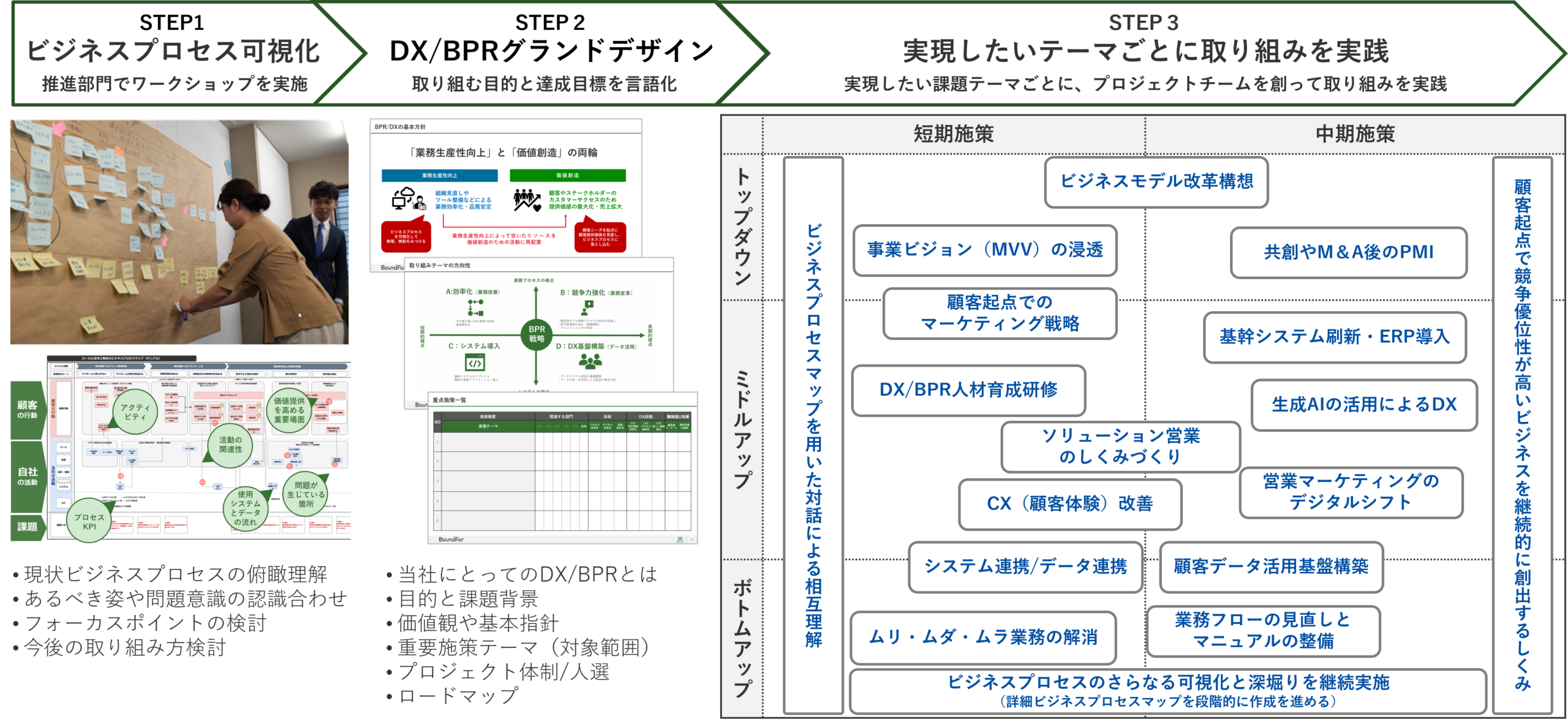 変革を形にする、3つの支援ステップ